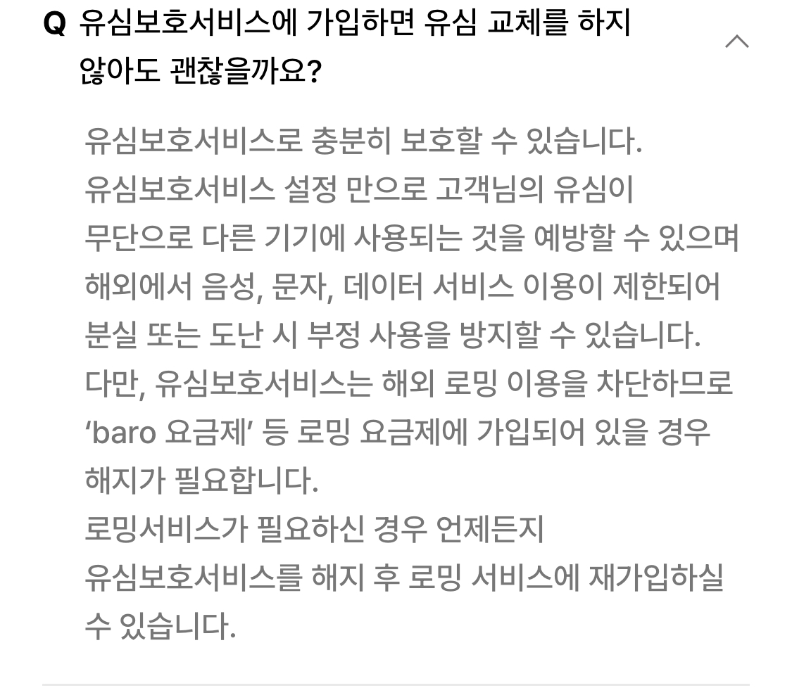 ํ์ฌ, SKT์์๋ ๊ณต์ง๋ก ํด๋น์ฌํญ์ ๊ณ ์งํ์๊ณ , ์์์กฐ์น๋ก ์ ์ฌ๋ณดํธ์๋น์ค ๋ฐ ์ ์ฌ๊ต์ฒด์๋น์ค๋ฅผ ๋ฌด๋ฃ๋ก ์ ๊ณตํ๊ณ ์์ต๋๋ค.