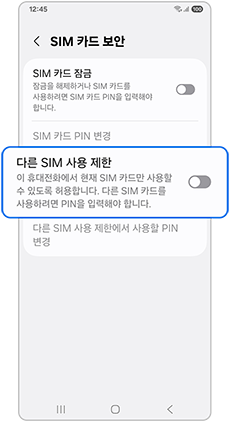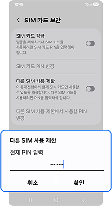- ํด๋์ ํ์์ ํ์ฌ ์ฌ์ฉ์ค์ธ SIM ์นด๋๋ง ์ฌ์ฉํ ์ ์๋๋ก ์ค์ ํ๊ณ , ๋ค๋ฅธ SIM ์นด๋๋ฅผ ์ฌ์ฉํ๋ ค๋ฉด PIN์ ์